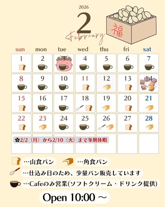 TSUNOWINE &BAKERY 営業日カレンダー