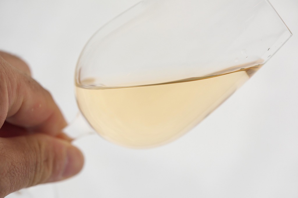 クリアで透明感があり、わずかにベージュがかったイエローゴールドの色調をしています。中程度の粘性や暖かみのある色調から、香りと風味の豊かな尾鈴のブドウが連想されます。